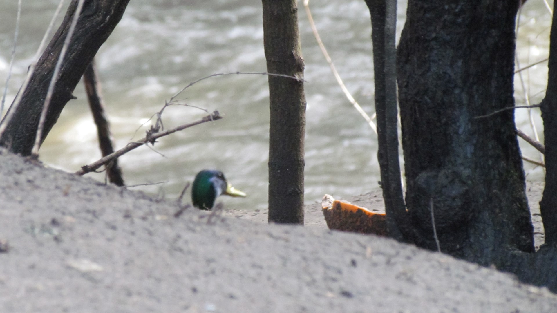 ... cind le aud ca incep sa tipe agitate din padure . cind ma uit sa vad de ce atita agitatie, vad trei puradei care le fugareau pe marginea riului, asa ca ratele si-au luat zborul si s-au refugiat in mijlocul apei.