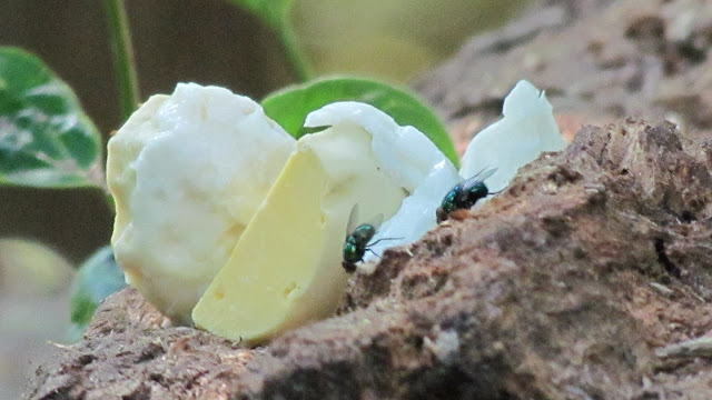 Cum am mai zis, am decis sa nu ma apropii prea mult de marmote, ca sa nu creada ca toti oamenii sunt prietenosi si le vor binele, pentru ca in ultimul an, locul cu casute a devenit foarte popular si mai bine nu. I-am pus niste oua fierte de care nu s-a atins, insa mustele s-au bucurat.