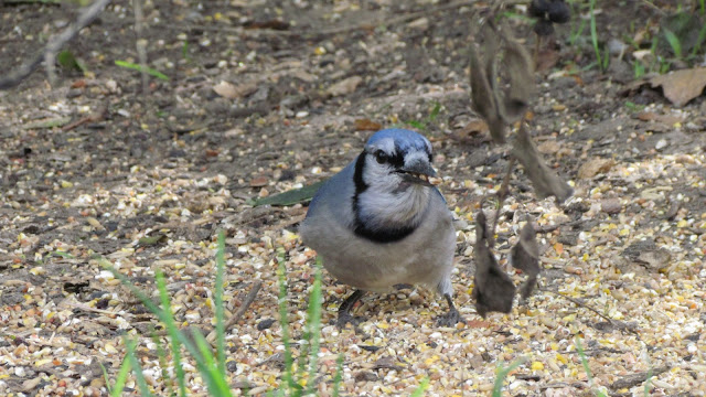 Un Blue Jay a dat alarma si toti au fugit care incotro, speriati sa se ascunda ...