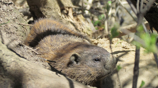 Marmo' statea la soare chiar la intrare in vizuina.