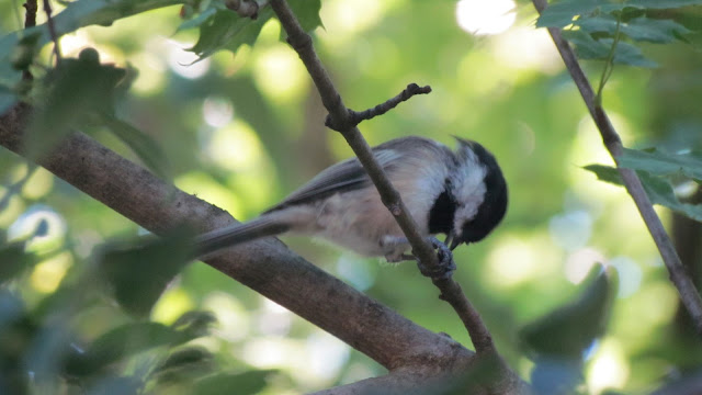 Ma rog... oarecum linistit, ca dupa ce a terminat de mincat i-am aruncat o aluna in coaja in boscheti, unde erau si alte veverite si un Blue Jay care toate pindeau aceeasi aluna. De cele mai multe ori i-o furau, ca Monstruletul e mic si fraier, da' e rau .... De data asta a reusit sa inhate el aluna, insa tiraia nervos la ceilalti, latra si injura.